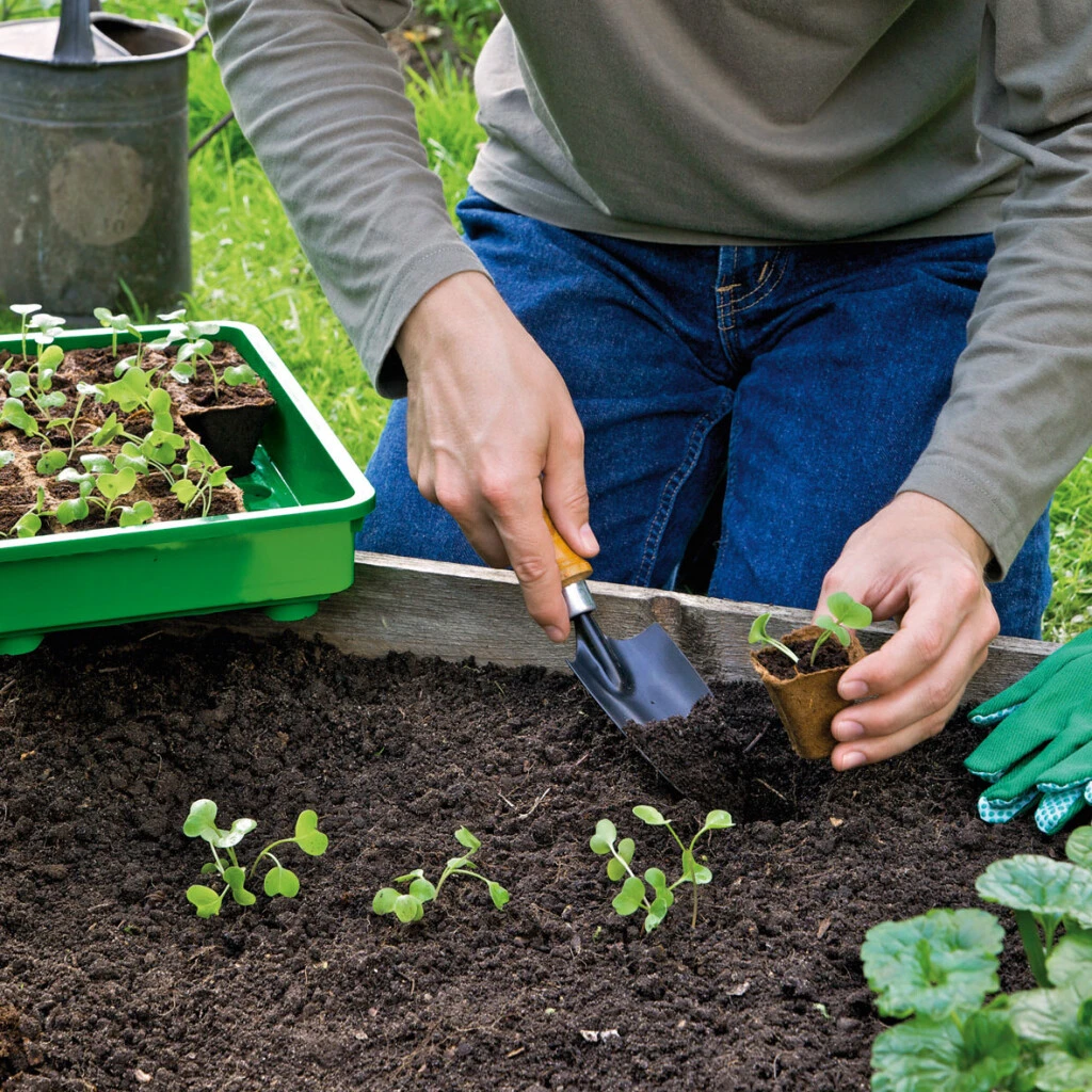 Haben die Pflänzchen kräftige Triebe entwickelt können Sie die Kokos-Anzuchttöpfe in grössere Töpfe oder bei entsprechender Witterung direkt ins Freiland auspflanzen. Vorher sollten Sie diese noch einmal gut wässern. Der Anzuchttopf bzw. die Topfwand wird fester Bestandteil des Wurzelballens und sollte nicht entfernt werden, es würde den Wurzeln schaden. Der Topf baut sich nach einiger Zeit im Boden biologisch ab.