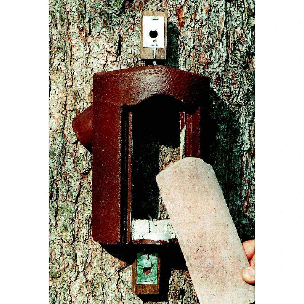 Die Baumläuferhöhle 2B hat zur einfachen Kontrolle und Reinigung eine abnehmbare Vorderwand, wodurch der Innenraum sehr schnell eingesehen werden kann. Die Nisthöhle wird mit zwei flexiblen Halteklötzchen aus Eiche und Alunägeln am Baumstamm befestigt. Dadurch ist ein sicherer Halt gewährleistet und ein Baumwachstum weitgehend kompensiert.
