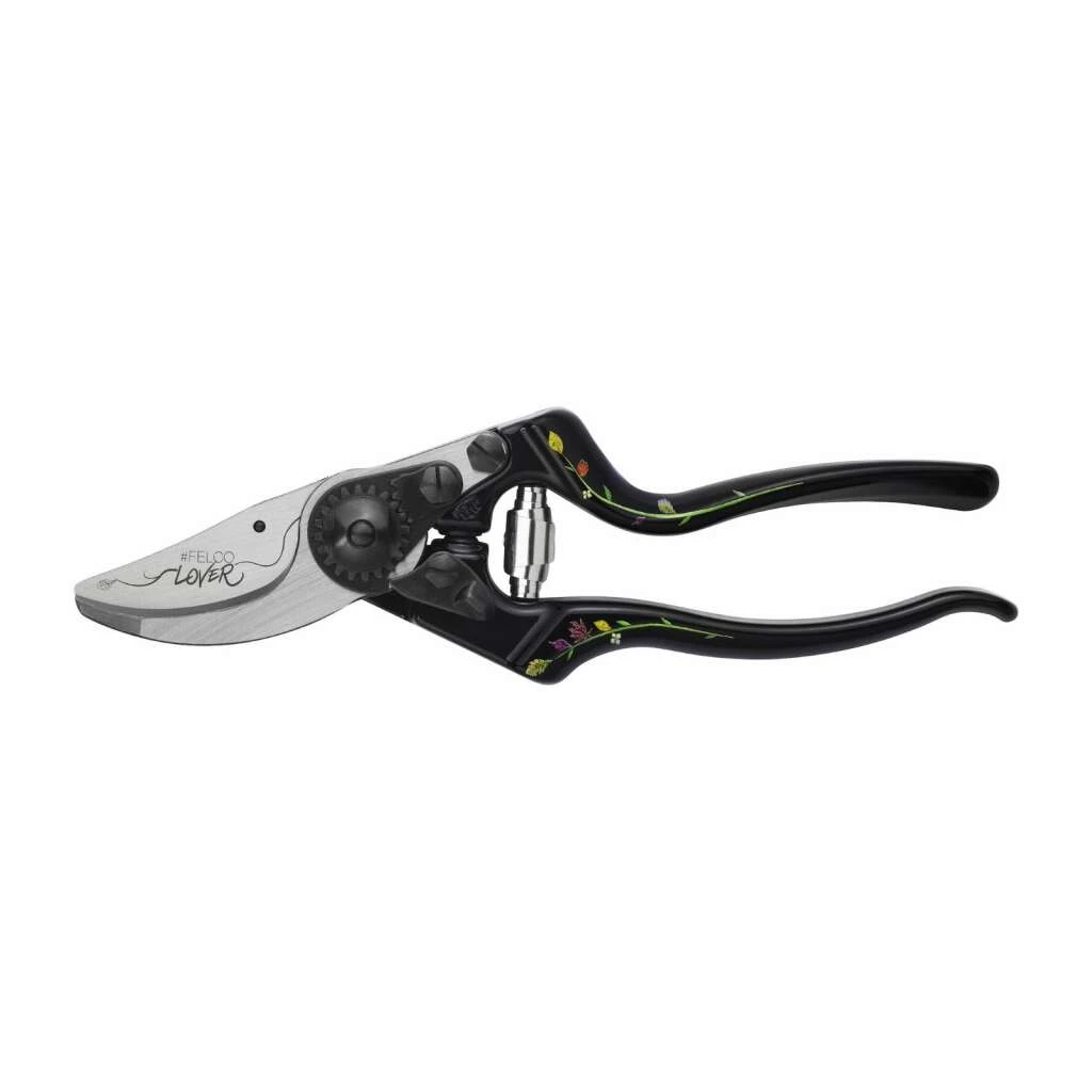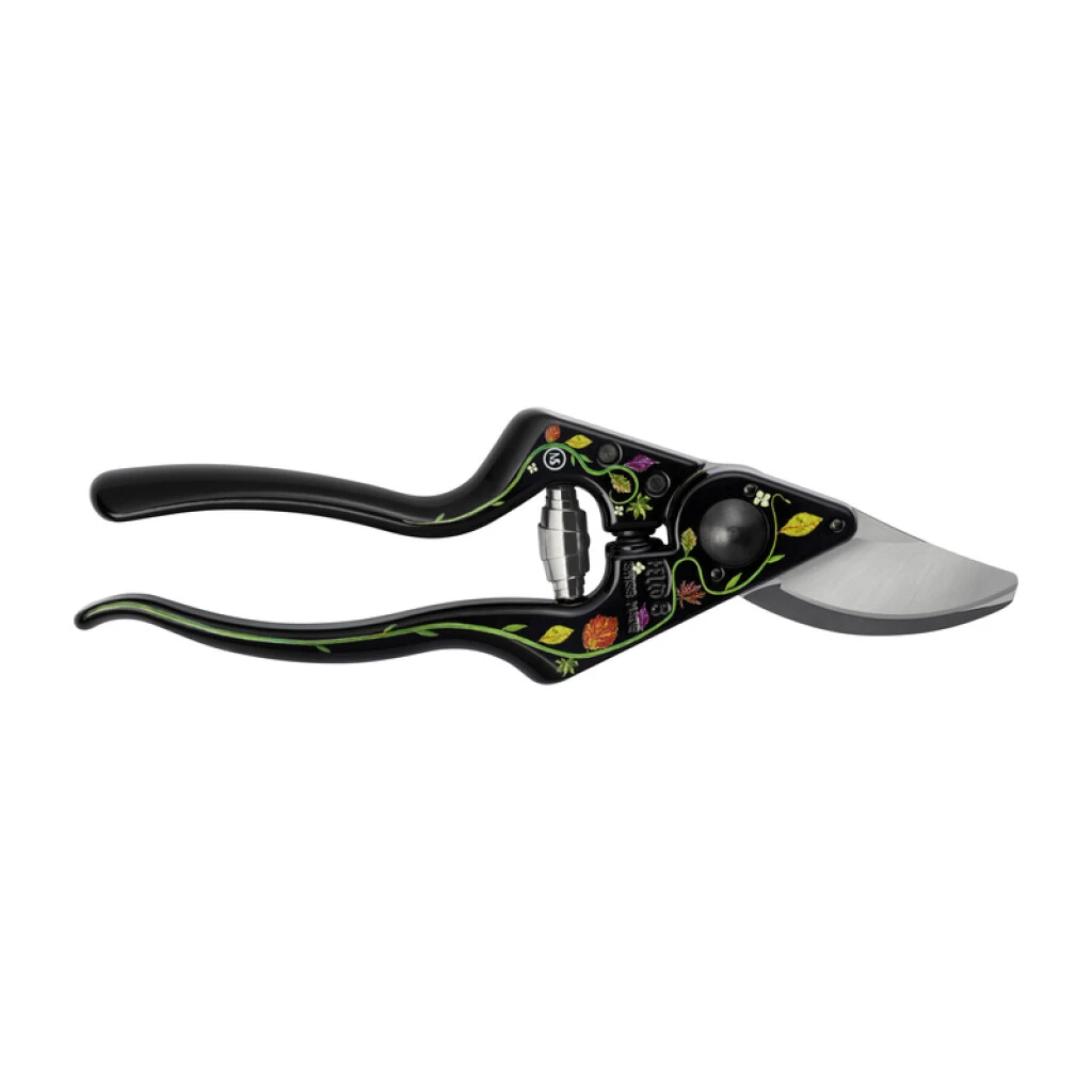 Diese Gartenschere verfügt über ein ausgeklügeltes Design, was sie ideal für schwierigen Schneidarbeiten macht. Die ausgezeichnete Ergonomie des Werkzeugs ist besonders für Benutzer mit grossen Händen geeignet und vermittelt ein Gefühl des Vertrauens, das aus einem festen und komfortablen Griff des Werkzeugs hervorgeht. Dank des geneigten Schneidkopfes wird die FELCO 8 sofort zu einer natürlichen Verlängerung Ihrer Hand, was die Effizienz bei all Ihren Schneidarbeiten erhöht. Die Aluminiumgriffe werden zunächst schwarz eloxiert, dann wird mittels UV-Drucktechnik eine Arabeske mit dem Herbarium von Stéphane Marie aufgedruckt, bevor das Ganze mit einer Thermolackierung geschützt wird.