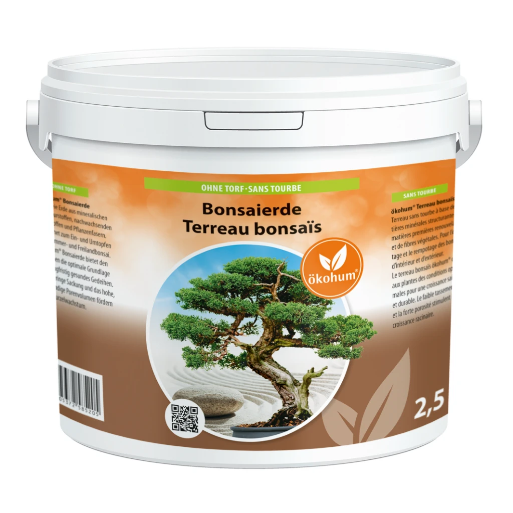 Torffreie Erde aus mineralischen Strukturstoffen, nachwachsenden Rohstoffen und Pflanzenfasern. Geeignet zum Ein- und Umtopfen von Zimmer- und Freilandbonsai. Die Erde wird im praktischen 2.5-Liter-Eimer geliefert.