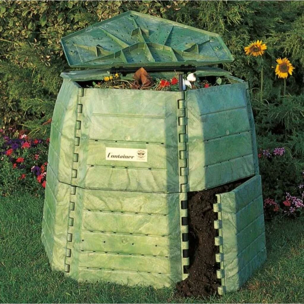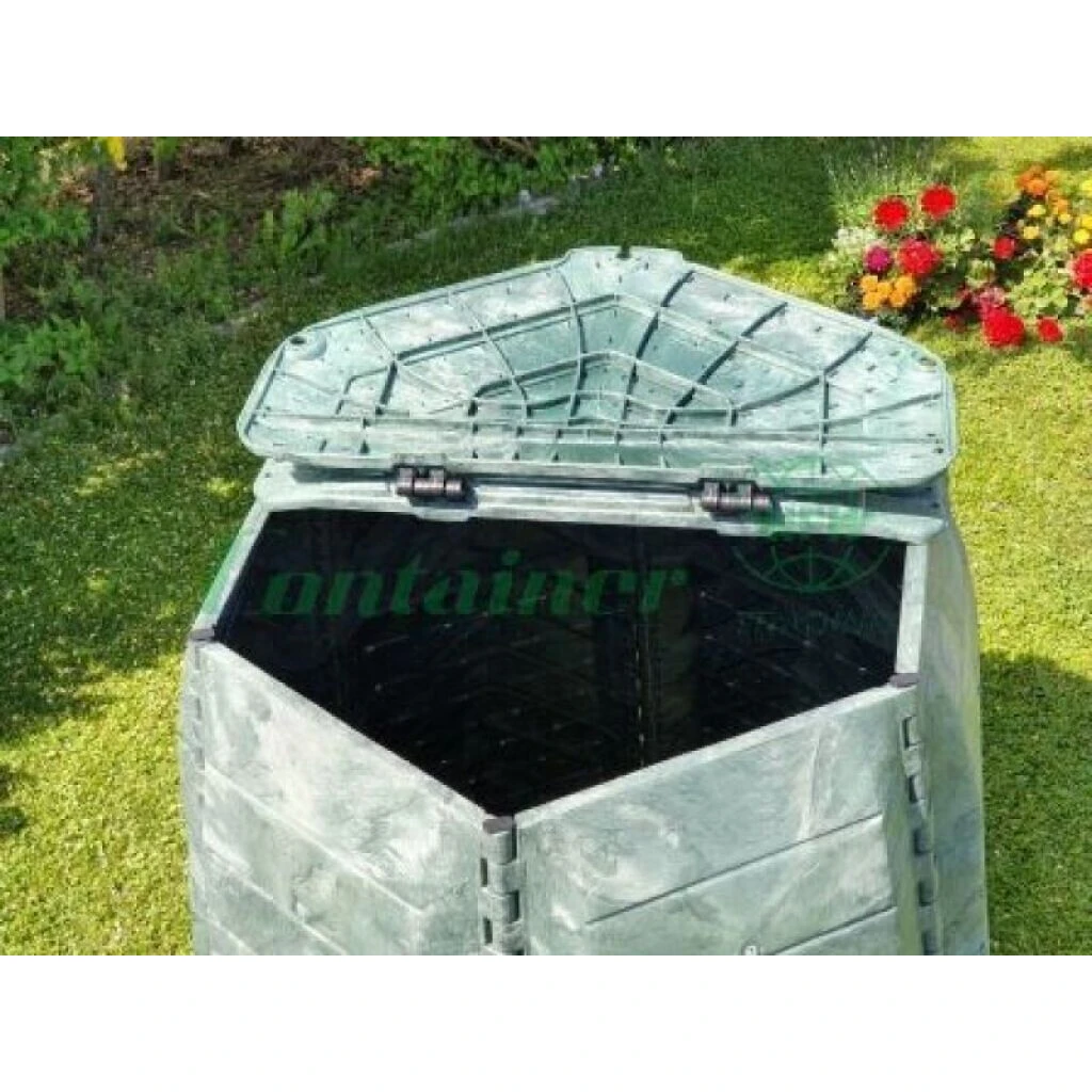 Der Thermo-Komposter KOMP 1050 der Firma Composter wird aus 100% Recycling-Kunststoff hergestellt und findet dank seiner kleinen Grösse Platz in fast jedem Garten. Die FCKW-freien, geschämten Wände des Komposters weisen eine Stärke von ca. 10 mm auf und isolieren den Innenraum ideal, sodass die mikrobiologischen Prozesse ideal ablaufen können. Dank der grossen Belüftungsöffnung und den Belüftungsschlitzen wird eine optimale Luftzufuhr sowie Feuchtigkeits- und Temperaturregulierung gewährleistet. So entsteht innert kürzester Zeit bester Humus. Selbst dichter Rasenschnitt kann zugeführt werden, ohne dass die Sauerstoffzufuhr gebremst wird.
