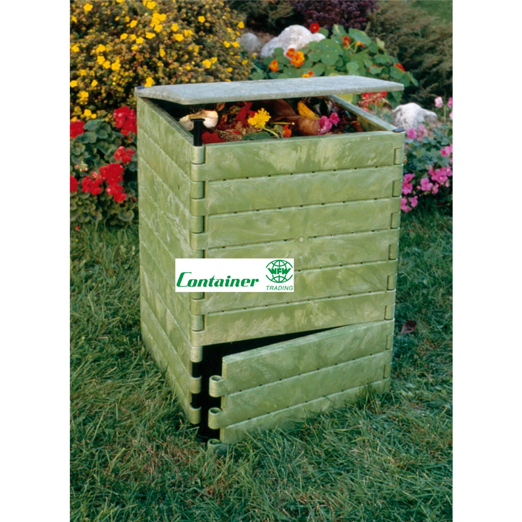 Der Thermo-Komposter KOMP 210 der Firma Composter wird aus 100% Recycling-Kunststoff hergestellt und findet dank seiner kleinen Grösse Platz in fast jedem Garten. Die FCKW-freien, geschämten Wände des Komposters weisen eine Stärke von ca. 10 mm auf und isolieren den Innenraum ideal, sodass die mikrobiologischen Prozesse ideal ablaufen können. Dank der grossen Belüftungsöffnung und den Belüftungsschlitzen wird eine optimale Luftzufuhr sowie Feuchtigkeits- und Temperaturregulierung gewährleistet. So entsteht innert kürzester Zeit bester Humus. Selbst dichter Rasenschnitt kann zugeführt werden, ohne dass die Sauerstoffzufuhr gebremst wird.