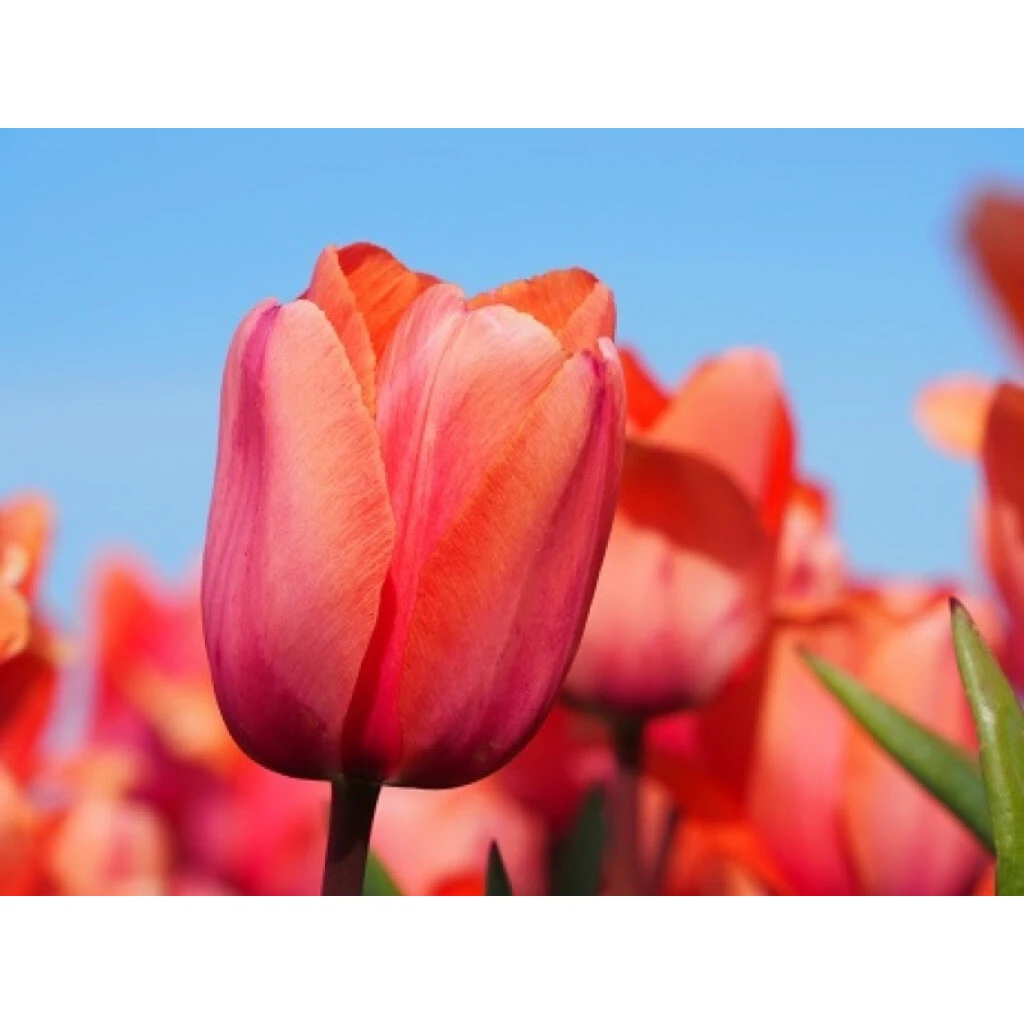 Wunderschöne, früh blühende Tulpe mit zart-rosa bis aprikosenfarbenen Blüten.