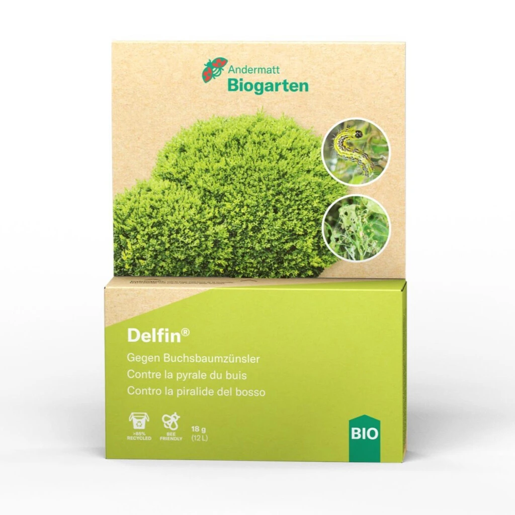 Delfin ist ein biologisches Pflanzenschutzmittel auf der Basis eines Bacillus thuringiensis-Stammes. Das natürliche Insektizid wirkt hervorragend gegen die Raupen des Buchsbaumzünslers. Delfin ist unbedenklich für Nützlinge und andere Organismen.
