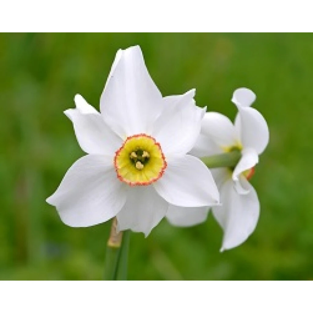 Ihre leicht zurückgebogenen weissen Blüttenblätter mit gelber Nebenkrone und einem leuchten roten Rand schmücken den Garten, wenn fast alle anderen Narzissen verblüht sind.