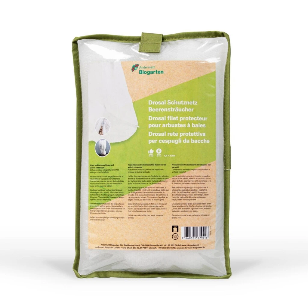 Drosal Schutznetz für Beerensträucher zum Schutz vor Kirschessigfliegen, Kirschenfliegen, Apfel- und Pflaumenwicklern, Sägewespen, Wespen und Hagelschaden