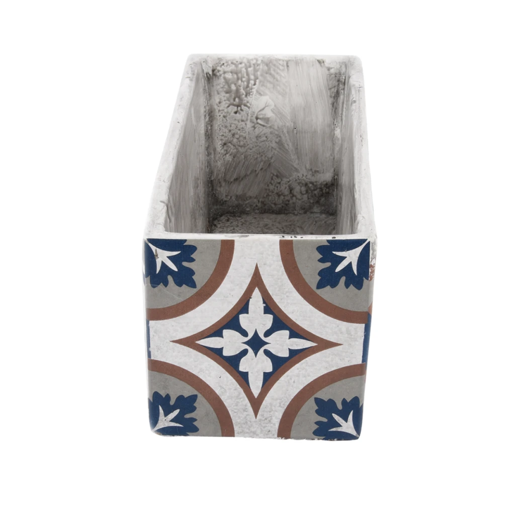 Dieser Blumenkasten mit portugiesischen Fliesenmotiven verleiht dem Innenraum, der Terrasse oder dem Garten einen mediterranen Touch.