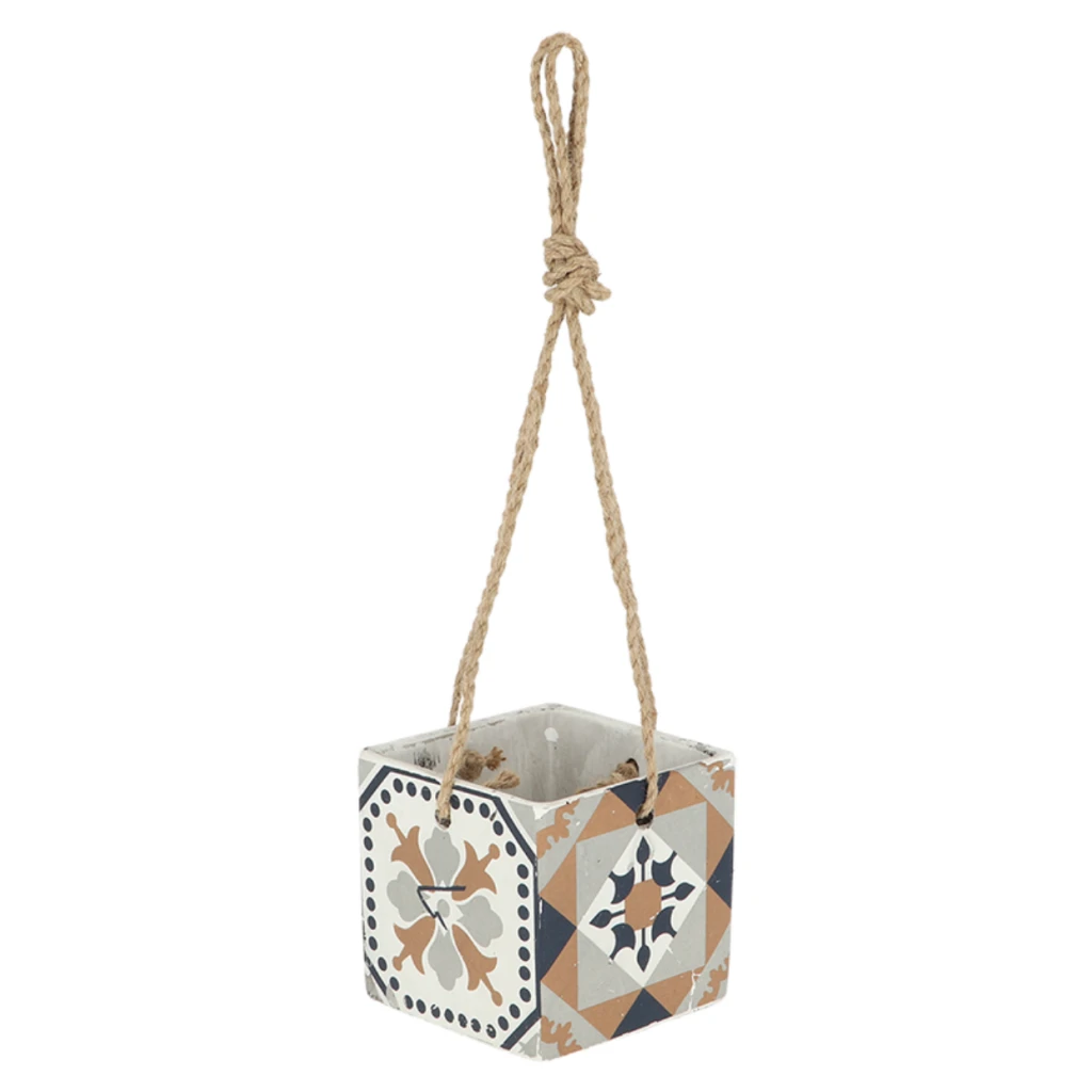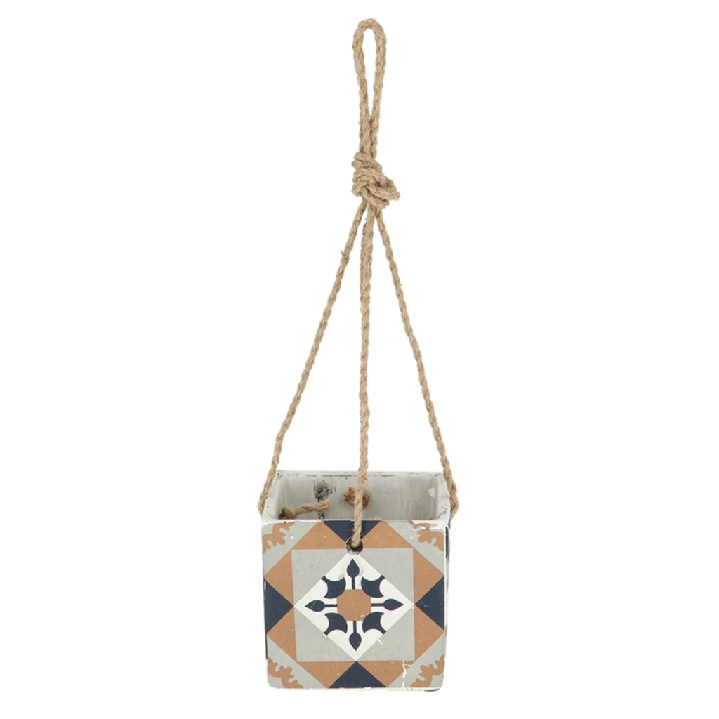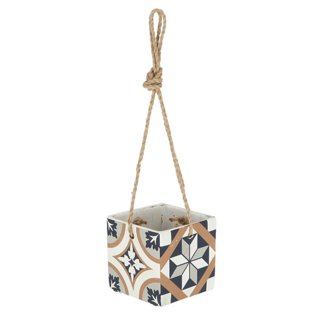 Dieser hängende Blumentopf mit Motiven portugiesischer Fliesen verleiht dem Innenraum, dem Garten oder der Terrasse einen mediterranen Touch.