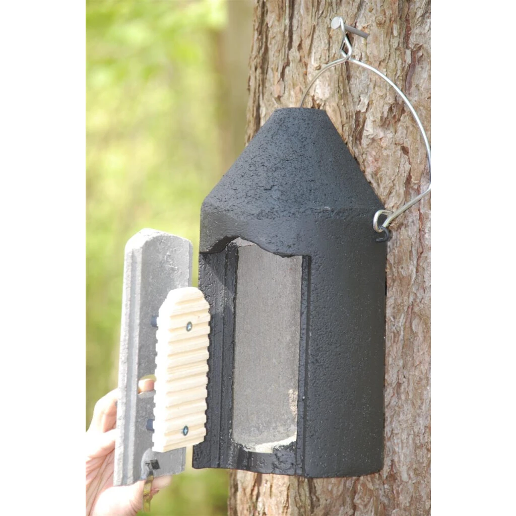 Durch eine spezielle, mit langzeitbeständigen geriffelten Holzplatten aufgedoppelte Vorderwand wird ein besonders bevorzugtes und annahmefreundliches Quartier für spaltenbewohnende Fledermäuse, wie beispielsweise Rauhhaut-, Wasser- und Zwergfledermäuse geschaffen.