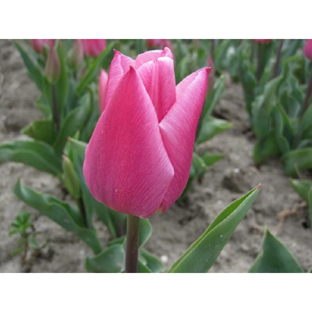 Die Blüte der ‚Christmas Dream‘-Tulpe ist leuchtend Pink und hat einen etwas helleren Rand.