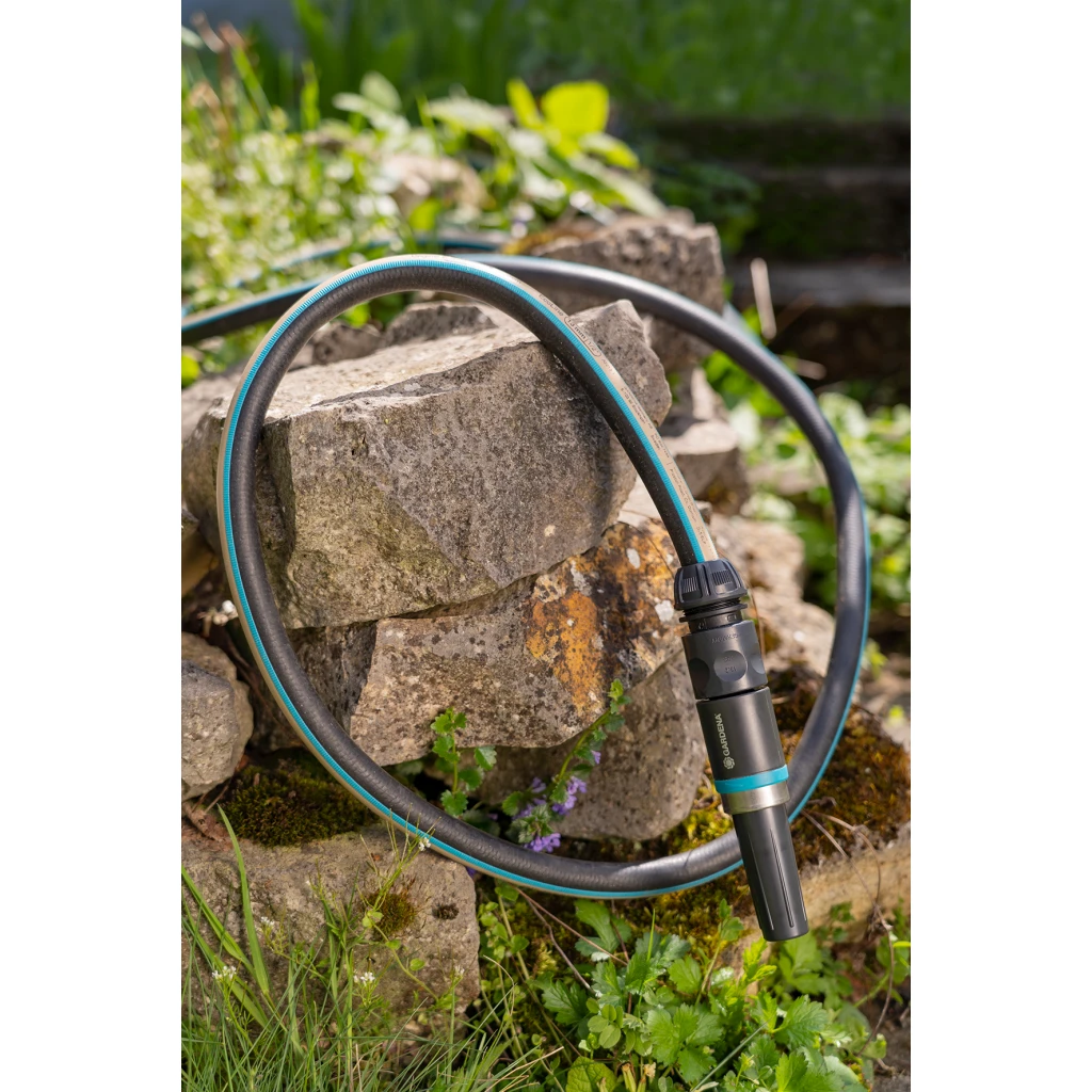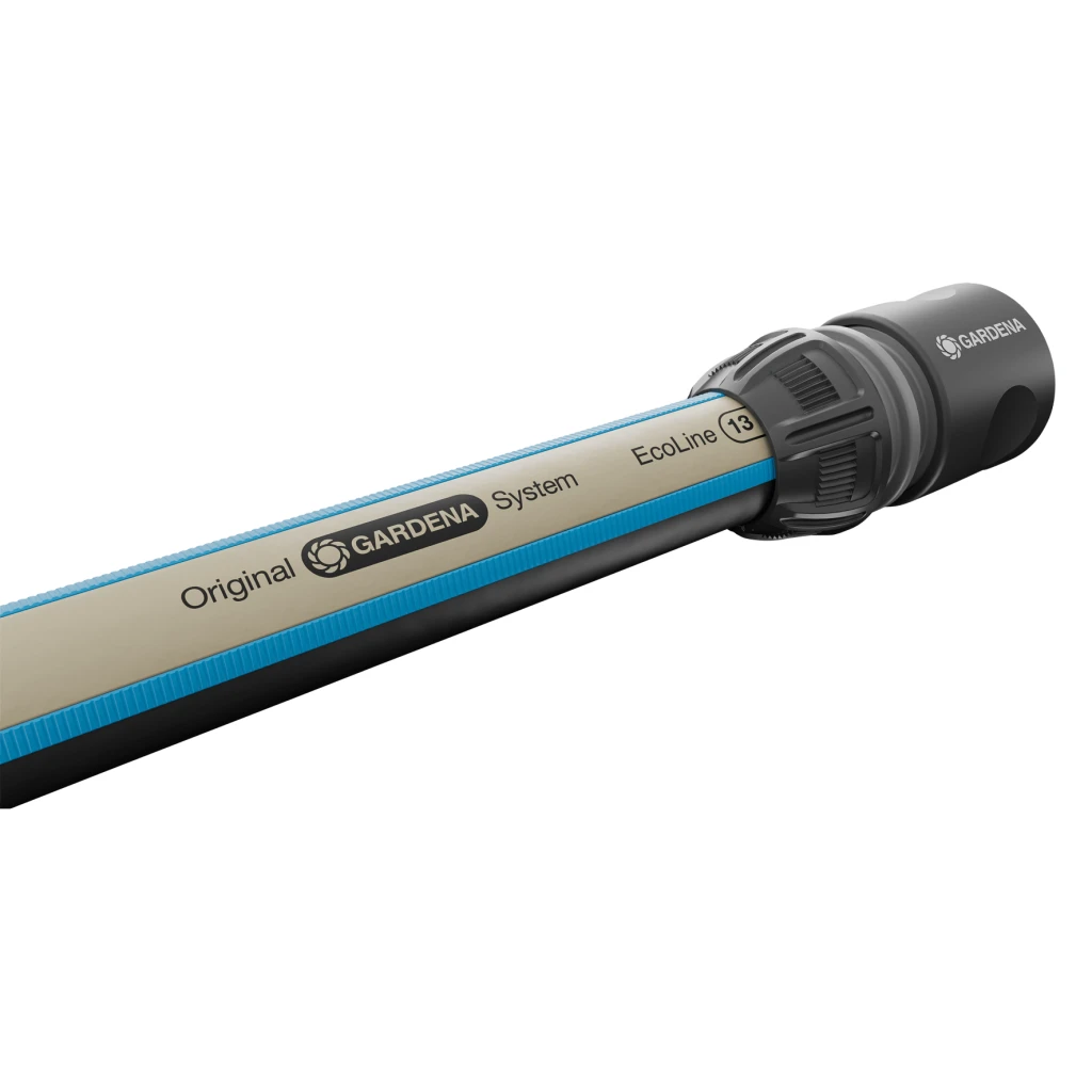 Der GARDENA EcoLine Schlauch Set 13 mm (1/2″) bietet eine nachhaltige Lösung für umweltbewusste Gartenbewässerung. Das Set beinhaltet einen 20 m langen Gartenschlauch sowie die EcoLine Grundausstattung mit einem Hahnverbinder mit Adapter, einem Schlauchverbinder, einem Wasserstop und einer Reinigungsspritze. Der Schlauch besteht aus TPE (Thermoplastische Elastomere), und die Kunststoffkomponenten wurden zu über 65 Prozent aus recyceltem Material hergestellt, hauptsächlich aus Haushaltsabfällen wie Verpackungen. Die Elemente der Grundausstattung bestehen zu über 90 Prozent aus recyceltem Kunststoff und sind ebenfalls aus Haushaltsabfall gefertigt. Das Metall-Element verwendet rostfreies, zu über 35 Prozent recyceltes Metall. Das Set überzeugt nicht nur durch sein schickes Design, sondern auch durch seine hochwertige Verarbeitung, die eine langlebige Verwendung gewährleistet und die Umwelt aktiv schützt. Der Schlauch ist frei von Phthalaten und schadstofffrei (0,1%) und bietet dank des Power-Grip-Profils eine stabile Verbindung und optimalen Halt zwischen Schlauch und Schlauchstück oder Wasserstop. Der Schlauch ist wendig und leicht in der Anwendung. Dank seiner UV-Resistenz und Frostbeständigkeit kann das Set das ganze Jahr über draußen gelagert werden. Der Wasserschlauch hat einen Berstdruck von 20 bar. Die Reinigungsspritze verfügt über einen 2-in-1-Sprühstrahl, der zwischen einem Stechstrahl für Reinigungsarbeiten und einem weicheren Sprühstrahl für Bewässerungsaufgaben stufenlos verstellt werden kann. Mit dem Wasserstop im Set kann das Aufsatzgerät ohne Gang zum Wasserhahn gewechselt werden. Das Wasser stoppt automatisch beim Abziehen der Spritze und setzt wieder ein, sobald der neue Aufsatz aufgesteckt ist. Das GARDENA EcoLine Schlauch Set 13 mm (1/2″) bietet Ihnen eine umweltfreundliche und praktische Lösung für Ihre Gartenbewässerung.