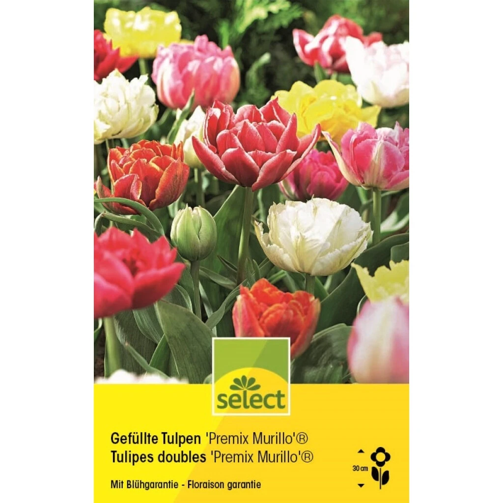Mischung gefüllter Tulpen in herrlichen Farben, sehr gute Flächenwirkung, blühen alle zur selben Zeit und in gleicher Höhe, langanhaltend, frühblühend. Die früh blühenden Sorten werden 25 bis 35 cm, die spät blühenden 40 bis 50 cm hoch. Der Wuchs von gefüllten Tulpen ist ähnlich wie der einfacher, früher Tulpen. Sie bringen jedoch grössere Blüten mit zahlreichen Blütenblättern hervor. Sie sind ideal für den Garten und für Gräber, da sie fast alle zur gleichen Zeit blühen und sehr lange halten. Ebenso gut eignen sie sich für die Bepflanzung von Gefässen.»