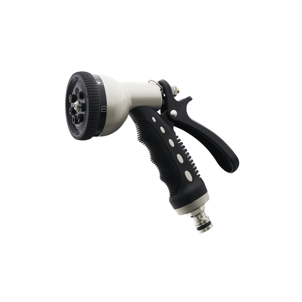 Diese hochwertige Gartenbrause bietet 7 Strahlarten und ist aus robuster Metallausführung gefertigt, was sie besonders langlebig macht. Der ergonomische, angepasste Lamellengriff sorgt für komfortable Handhabung. Zusätzlich gewährleistet der verchromte Messingstecker eine lange Lebensdauer. Diese Gartenbrause ist kompatibel mit allen marktüblichen Stecksystemen und somit äußerst vielseitig einsetzbar. Geniessen Sie eine erstklassige Bewässerungserfahrung mit dieser strapazierfähigen und praktischen Gartenbrause für Ihre Gartenarbeit!