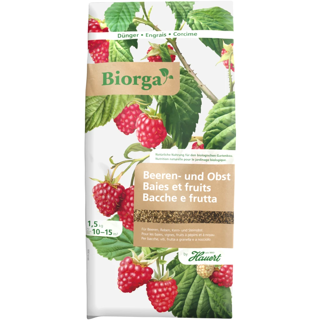Hauert Biorga Beeren- & Obstdünger deckt den besonderen Nährstoffbedarf von Beeren und Obst ab. Der rein natürliche Dünger ist universell einsetzbar für Erdbeeren, Himbeeren, Johannis-, Stachel- und Brombeeren sowie für Kern- & Steinobst.
