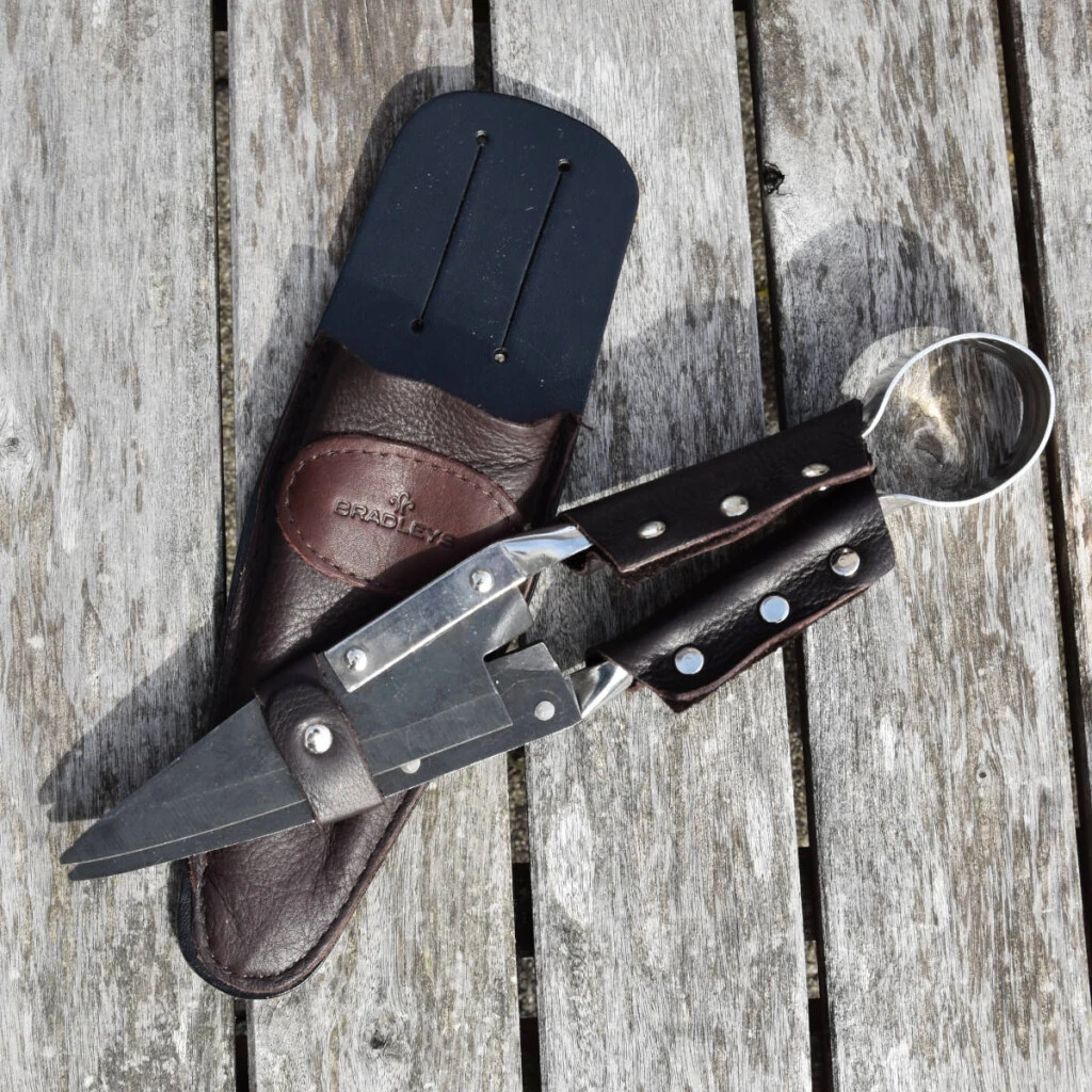 Die Topiary-Schere mit Ledergriff von Bradleys the Tannery ist ein grossartiges Werkzeug zum Beschneiden und Formen Ihrer Hecken. Erhältlich in klassischem Braun, Pink und Grün (hier zu den farbigen Heckenscheren).
