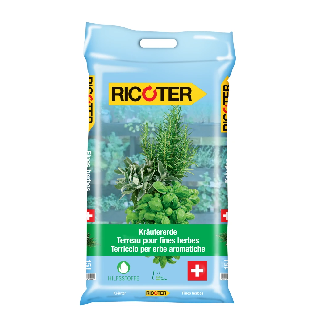 Die Ricoter-Kräutererde eignet sich ideal für Ihren Kräutergarten – egal ob für die Kultur im Topf oder im Beet. Die Erde ist zusammengesetzt aus biologischem Torfersatz, Rindenkompost und Landerde.