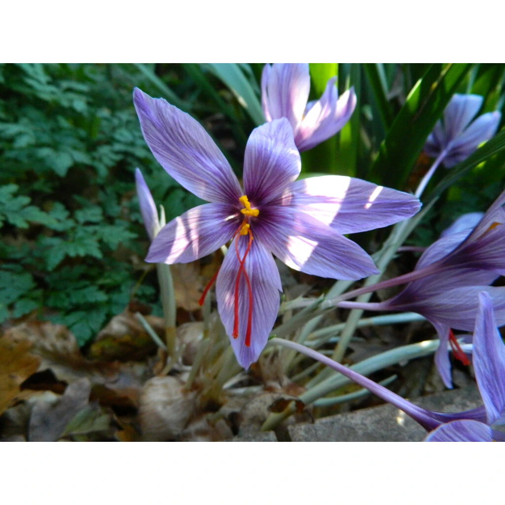 Dieser Krokus blüht schon im Oktober. Damit sie jährlich blühen braucht er einen warmen Standort. Die roten Fäden der Blüten können getrocknet oder frisch als Gewürz verwendet werden.