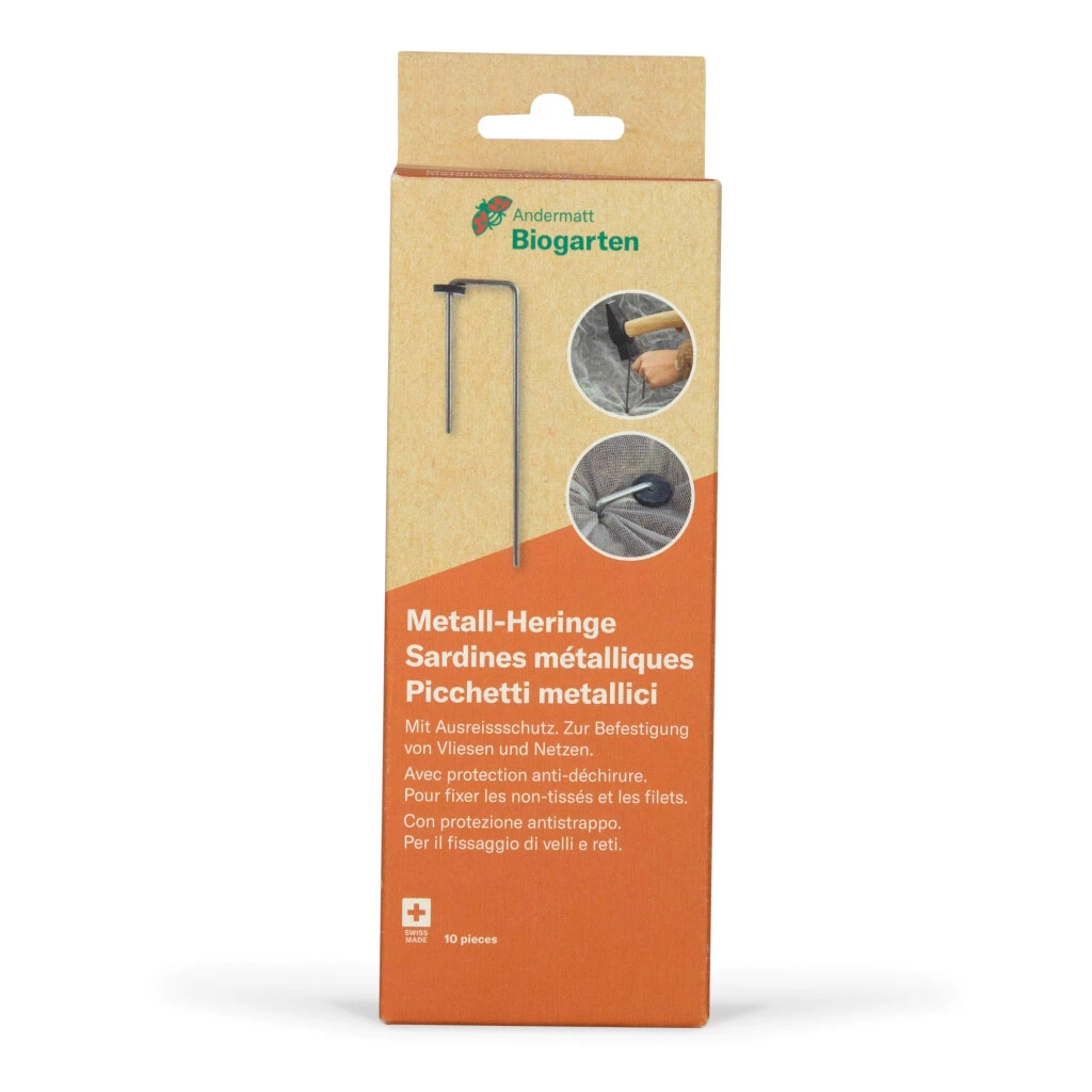 Verzinkte Metall-Heringe zur sicheren, schnellen und sauberen Befestigung von Insektenschutznetzen, Vliesen, Mulchpapier oder auch Folien