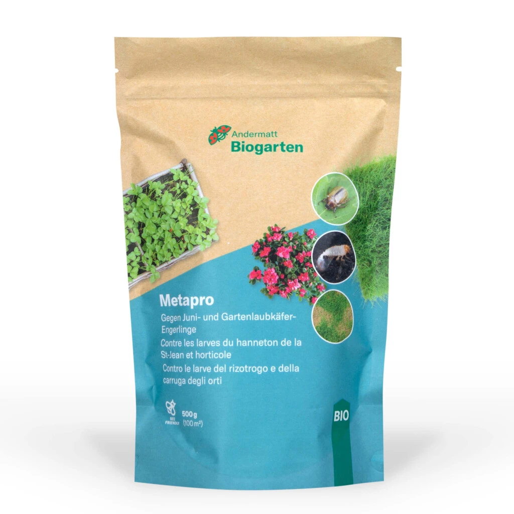 Metapro enthält den Pilz Metarhizium anisopliae und eignet sich für die biologische Bekämpfung von Juni- und Gartenlaubkäfer-Engerlinge. Der Pilz breitet sich im Boden aus, befällt die darin vorkommenden Engerlinge und bringt sie zum Absterben.