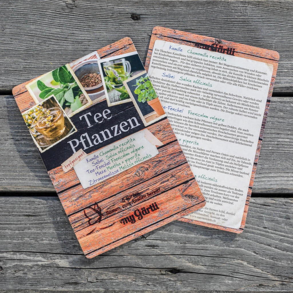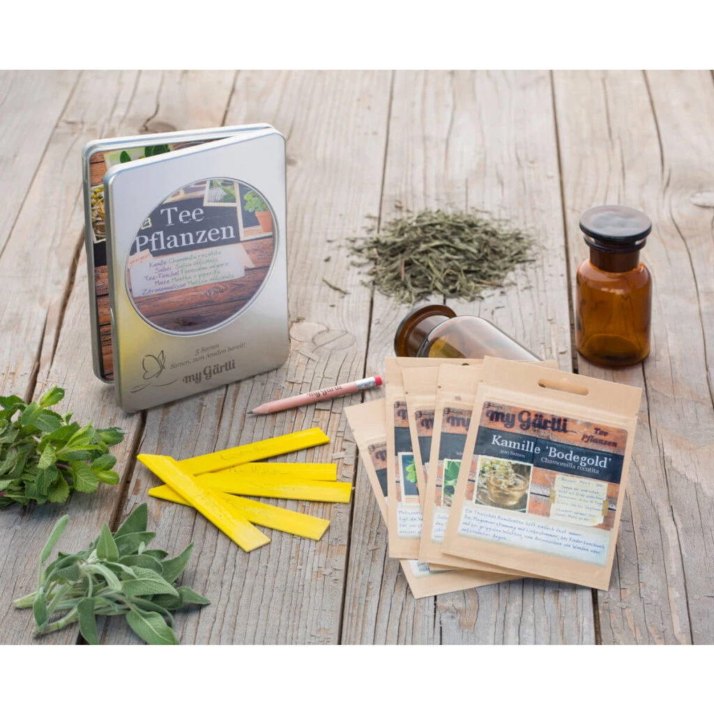 Wobei man es mit dem Tee nicht zu eng sehen sollte, denn Minze, Salbei und Fenchel sind auch Gewürz. Im Innern der Schachtel warten 5 Samentütchen zu robusten, geschmackvollen Sorten, die nötigen Informationen und hilfreiches Zubehör auf kräuterfreundliche Gärtnerseelen und solche die es werden wollen.