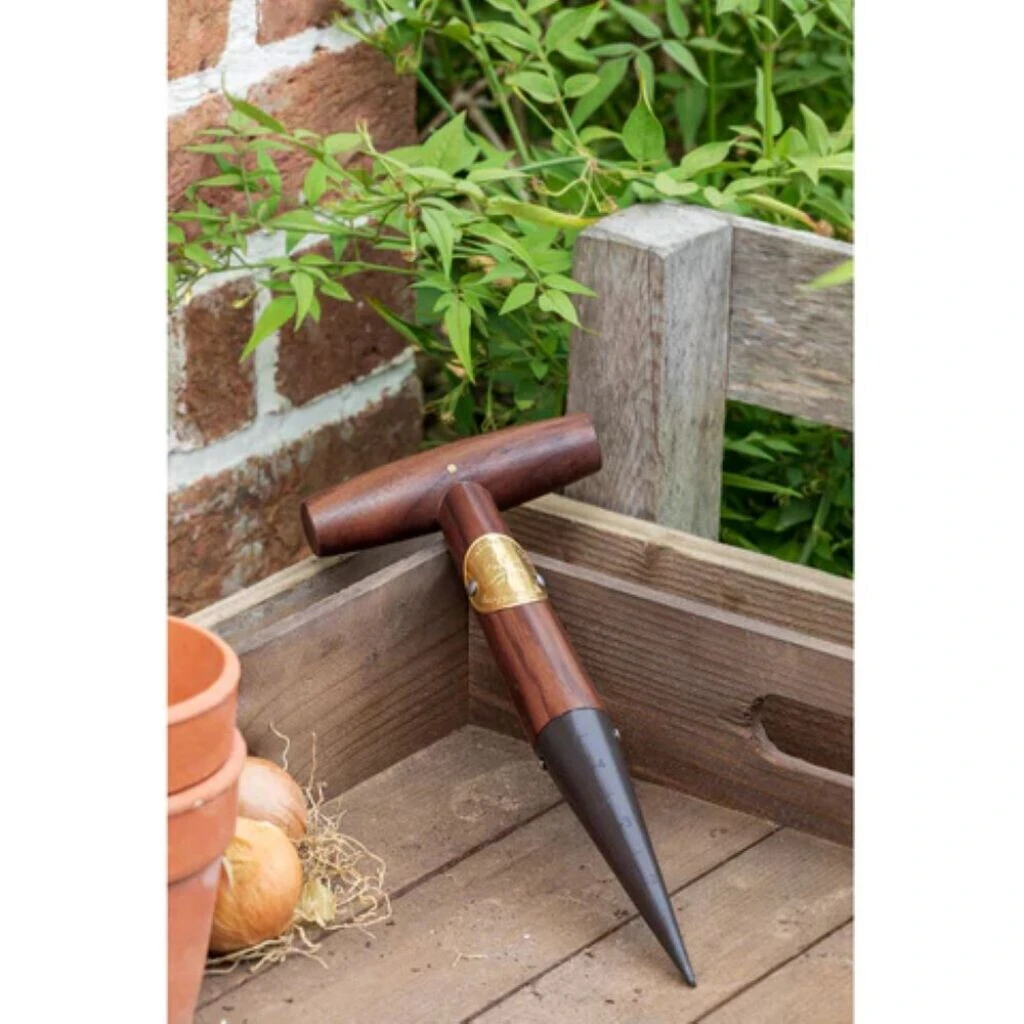 Die Spitze dieses Pflanzstocks schafft schnell und einfach Löcher zum Umpflanzen von Pflanzen, Sämlingen und Zwiebeln. Der Kopf verfügt über einen Tiefenmesser, wodurch das Pflanzen in der richtigen Tiefe erleichtert wird.