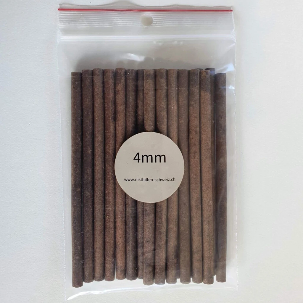 Diese Papphülsen eignen sich sehr gut zum füllen von Wildbienen-Nisthilfen sowie auch für Insektenhotels. Die Hülsen sind haben einen Durchmesser von 4 mm und eine Länge von 120 mm.