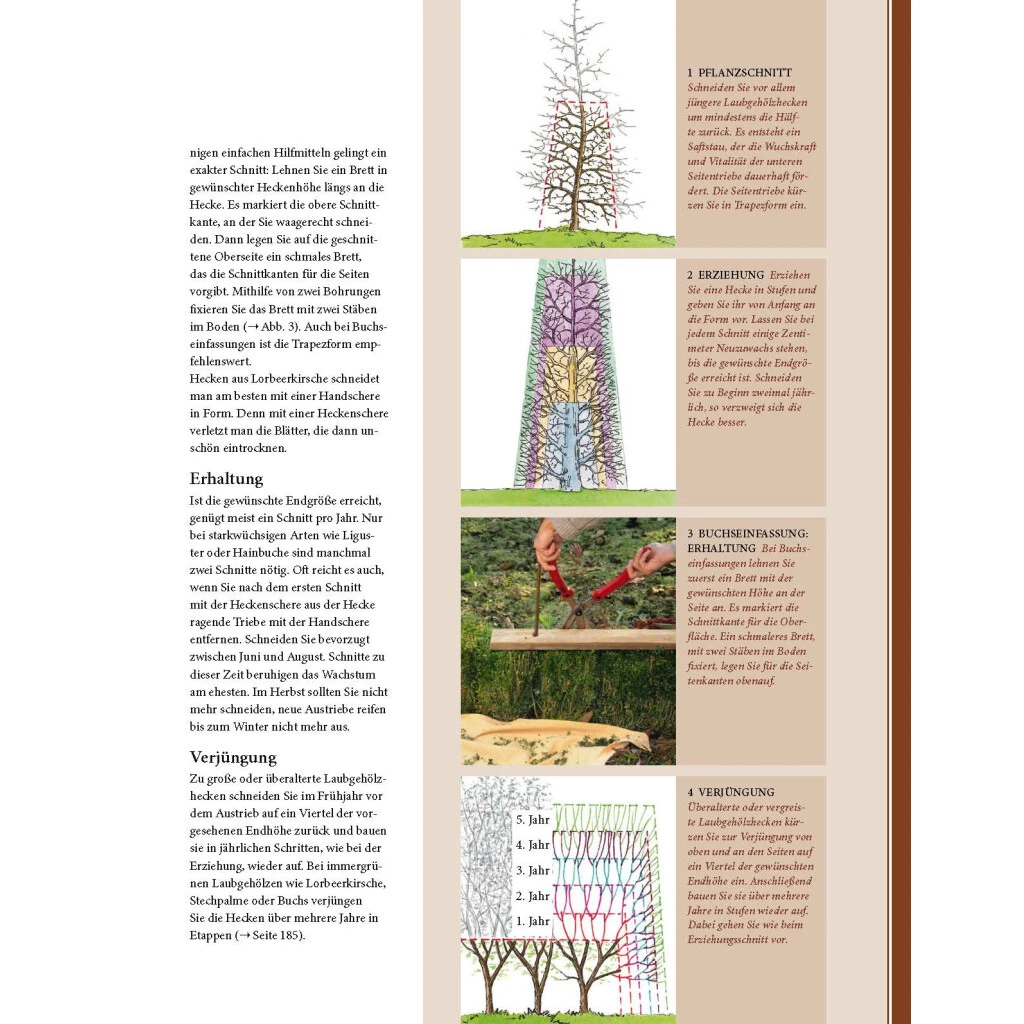 erkennen und zu vermeiden. Ein Schnittkalender zeigt auf einen Blick den richtigen Zeitpunkt für den Schnitt Ihrer Gehölze. Ein Glossar zu den wichtigsten Fachausdrücken, ein Register sowie weiterführende Literaturtipps runden das Handbuch ab.