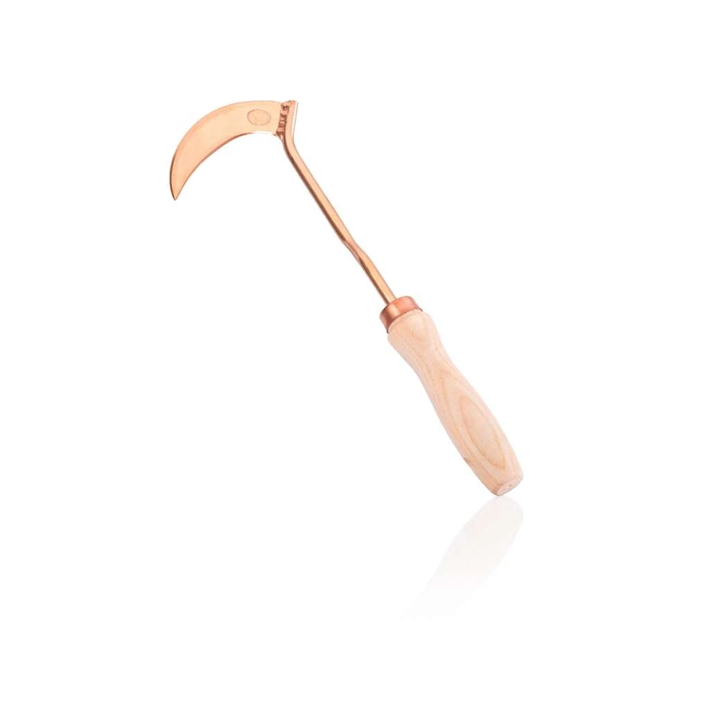 Traditionelle slowenische Werkzeuge in Bronzevariante. Früher wurde es zum Unkrautjäten von Getreide verwendet, heute wird es hauptsächlich zum Unkrautjäten von Erdbeeren, Karotten und bei wenig Platz zwischen den Pflanzen verwendet. «Es ist mein Lieblingsjäter – ein brillantes Werkzeug und so schnell zu arbeiten.» Nick Crowley – The Wonderful Garden Company
