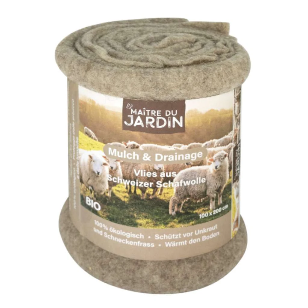 Dieses Schafwoll-Mulch- und Drainagevlies wird aus 100% Schafwolle in der Schweiz hergestellt und schützt die Anbaukultur vor Unkraut und Schneckenfrass.