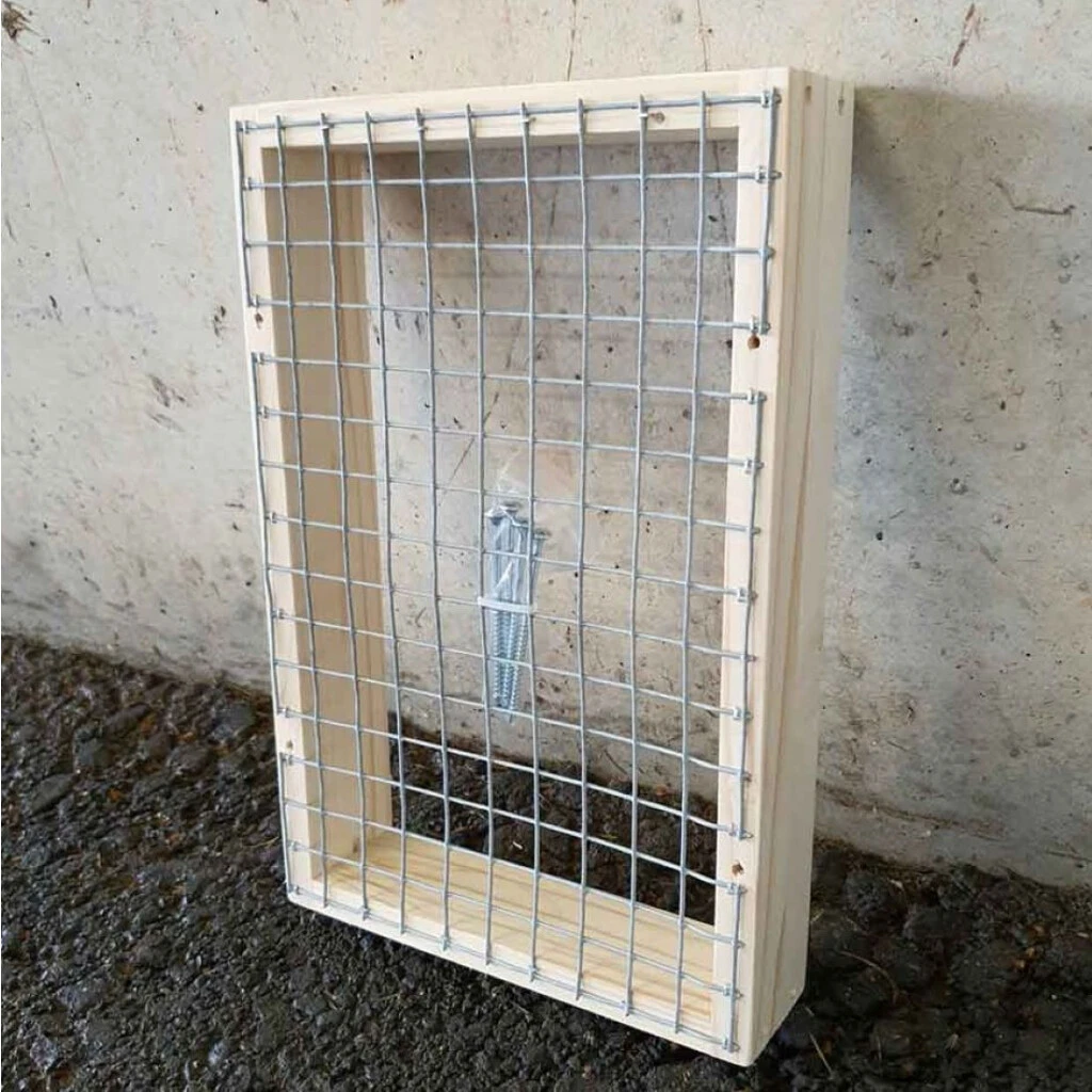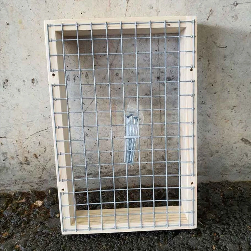 - Material: Holzrahmen aus Tannenholz. Maschendraht 2cm x 2cm Öffnungen. Holzrahmen vorgebohrt für die einfache Montage. 4 verzinkte passende Schrauben.
