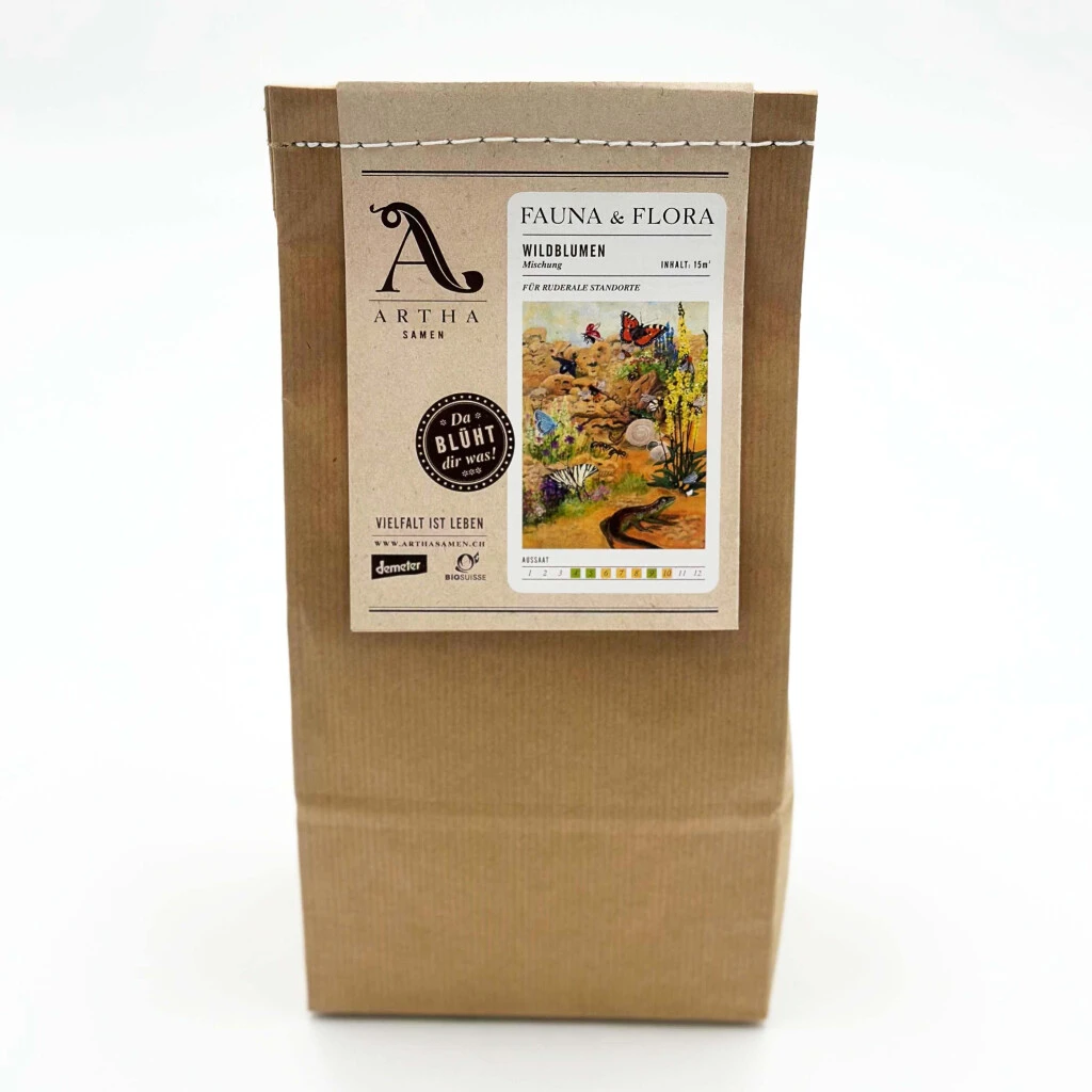 Mehrjährige artenreiche Mischung mit 27 einheimischen Wildblumen. Zur Förderung und Erhaltung einer vielfältigen Fauna und Flora an kargen, sonnigen Standorten. Ein Ort an dem sich Schmetterlinge, Bienen aller Art und Hummeln gerne tummeln.