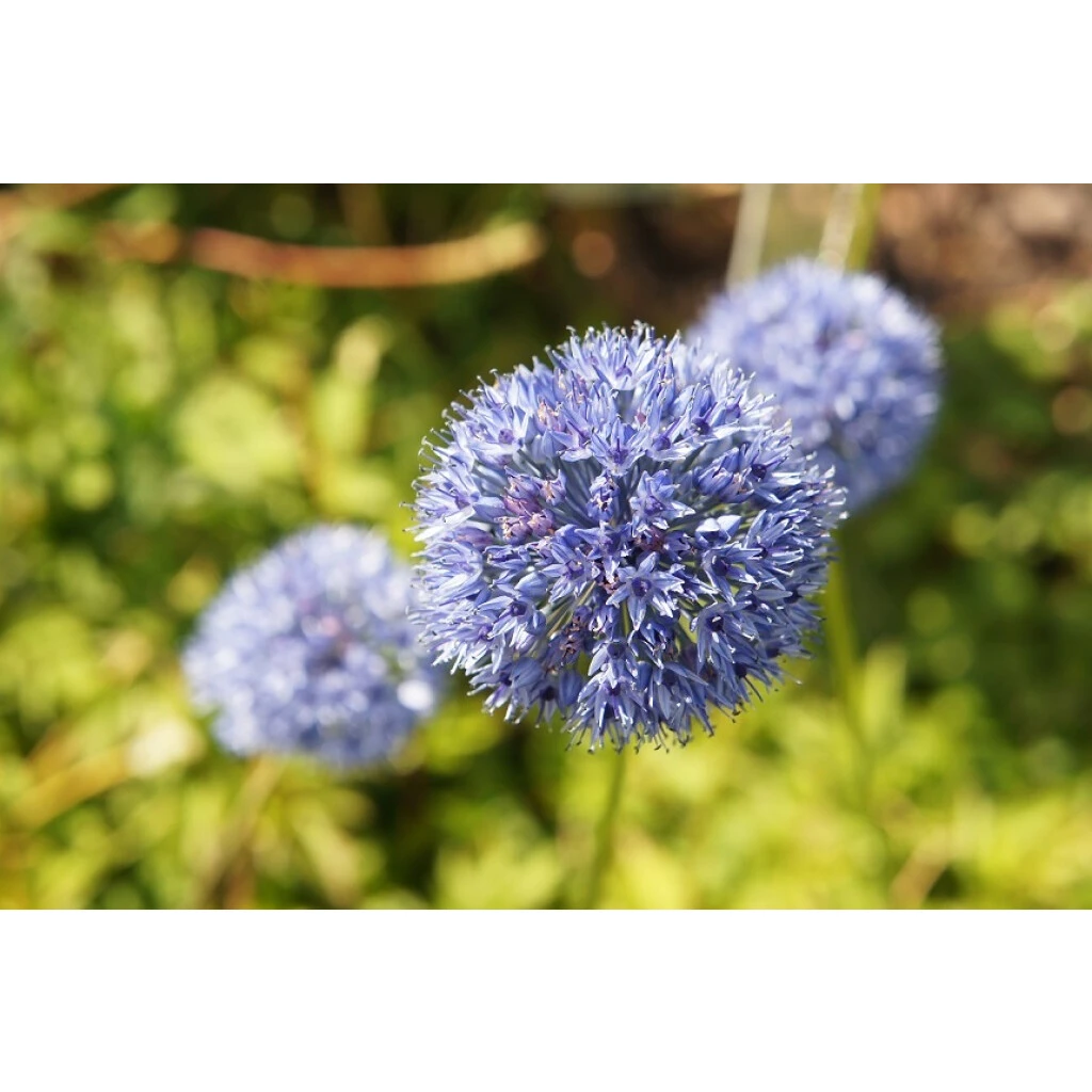 Der mittelhohe, himmelblaue Lauch stamm aus Zentralasien. Seine Blütenfarben sind äusserst spektakulär. Einen runden Ball bilden viele, sternförmige Einzelblüten.